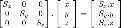 Following the previous formula, we can figure out how to make a 2D scaling matrix: