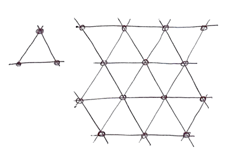 How is the simplex grid made? In another brilliant and elegant move, the simplex grid can be obtained by subdividing the cells of a regular 4 cornered grid into two isosceles triangles and then skewing it until each triangle is equilateral.